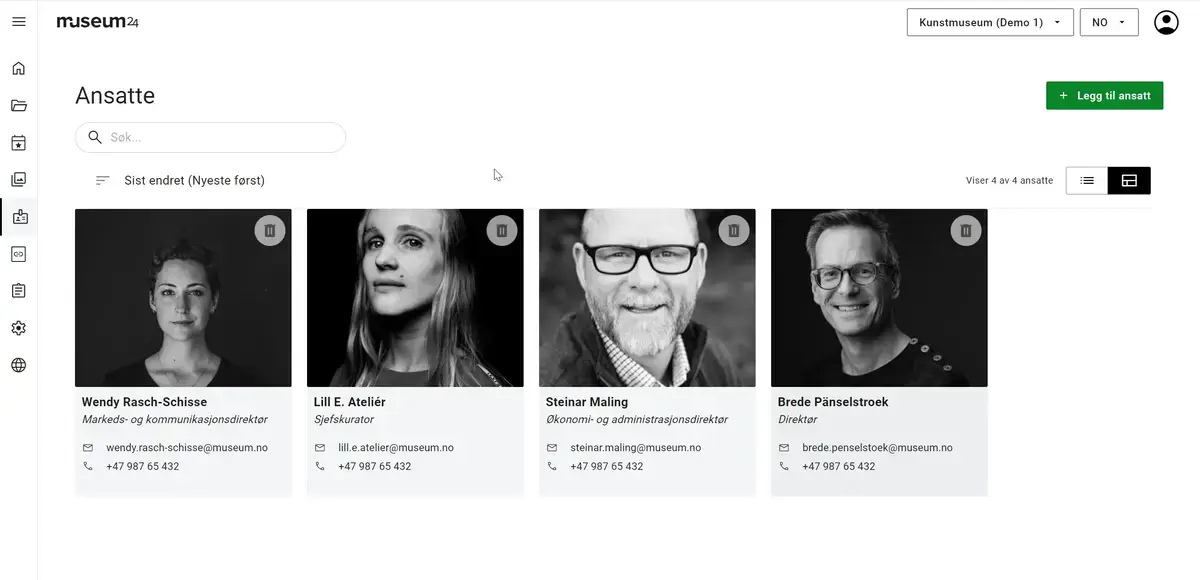 Ansatte opprettes og redigeres i et eget ansatte-galleri, og kan listes ut automatisk (eller plukkes manuelt) på nettsiden med dedikerte moduler. Ansatte kan også listes ut på tvers av nettsteder med sider man har delingsavtale med.