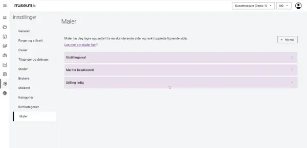 Når man lager en side i Museum24 bygger man alt innholdet fra bunn - seksjoner og moduler. Dette gir en stor fleksibilitet, og gjør at innhold og oppsett/design kan tilpasses hverandre. Men det kan også føles tidkrevende hvis man ønsker samme oppsett gjentatte ganger.