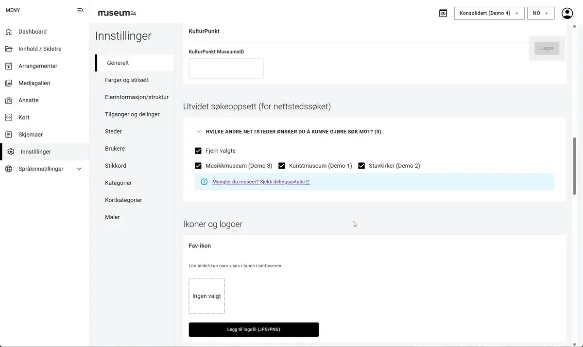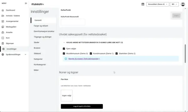 Man kan også sette opp søk slik at det søker på tvers av nettsteder. Dette kan være relevant f.eks. på nettsiden for det konsoliderte museet, der man også ønsker treff på nettstedet for det enkelte museet.
